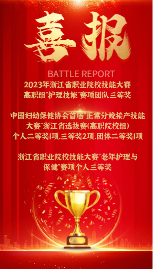 近期,健康学院师生受邀参加了2023年浙江省职业院校技能大赛高职组“护理技能”赛项、浙江省职业院校技能大赛“老年护理与保健”赛项、中国妇幼保健协会首届“正常分娩接产技能大赛”浙江省选拔赛(高职院校组),共计荣获个人二等奖1项、三等奖3项,获团体二等奖1项、团队三等奖1项。