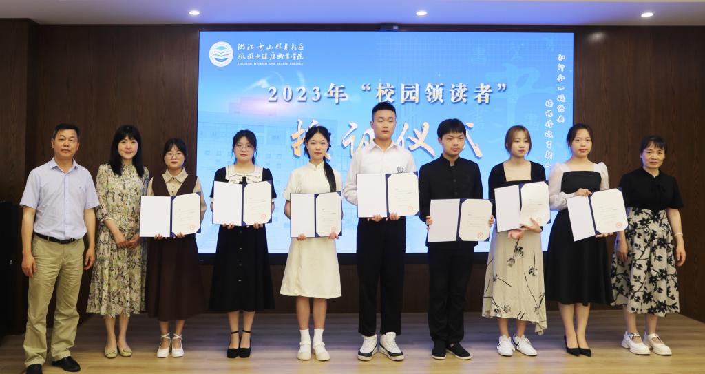 仪式还邀请我校人文社科与体育部培育的“校园领读者”项目团队成员为大家带来了经典文学作品推介和诵读,图书馆将为学校经典诵读品牌的打造提供更好的平台和资源支撑,共同将这一优秀的校园文化品牌建设推向深入。浙江海洋大学王鸳珍馆长、浙江国际海运职业技术学院周勤副馆长、人文社科与体育部张毅主任为2023年度校园领读者授证。