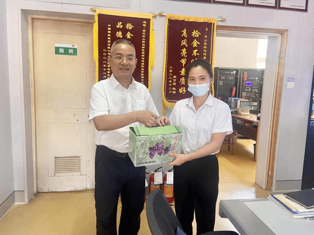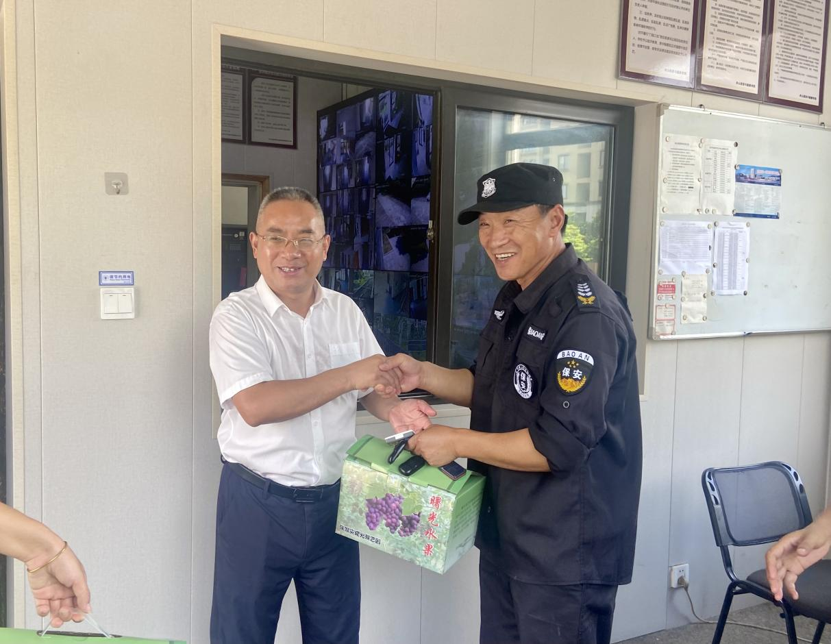 2023年8月10日上午,校长郑能波带队看望慰问暑期坚守岗位的教职员工,为他们送上慰问品。校长办公室、后勤处相关负责人陪同慰问。