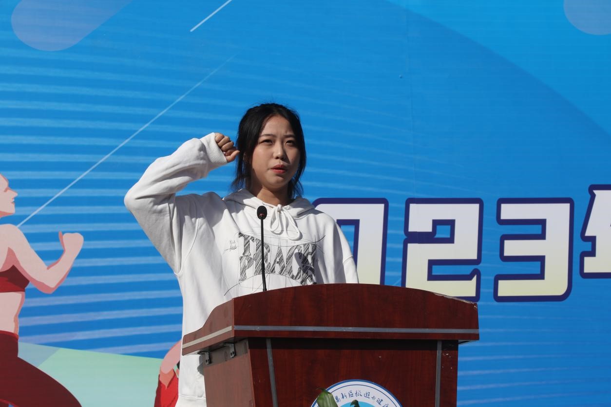 党委副书记、工会主席张朝阳致开幕词。他指出,体育承载着国家强盛、民族振兴的梦想,本次运动会是学校坚决贯彻落实习近平总书记关于加强体育工作的重要讲话精神的有效践行,是对我校体育工作、学生体育素质和精神风貌的一次检阅。他希望,全体运动员赛出风格,赛出水平。裁判员恪守“公开、公平、公正”的宗旨,维护赛场纪律。全体工作人员牢记安全两字,热情服务。争取体育比赛和精神文明双丰收。