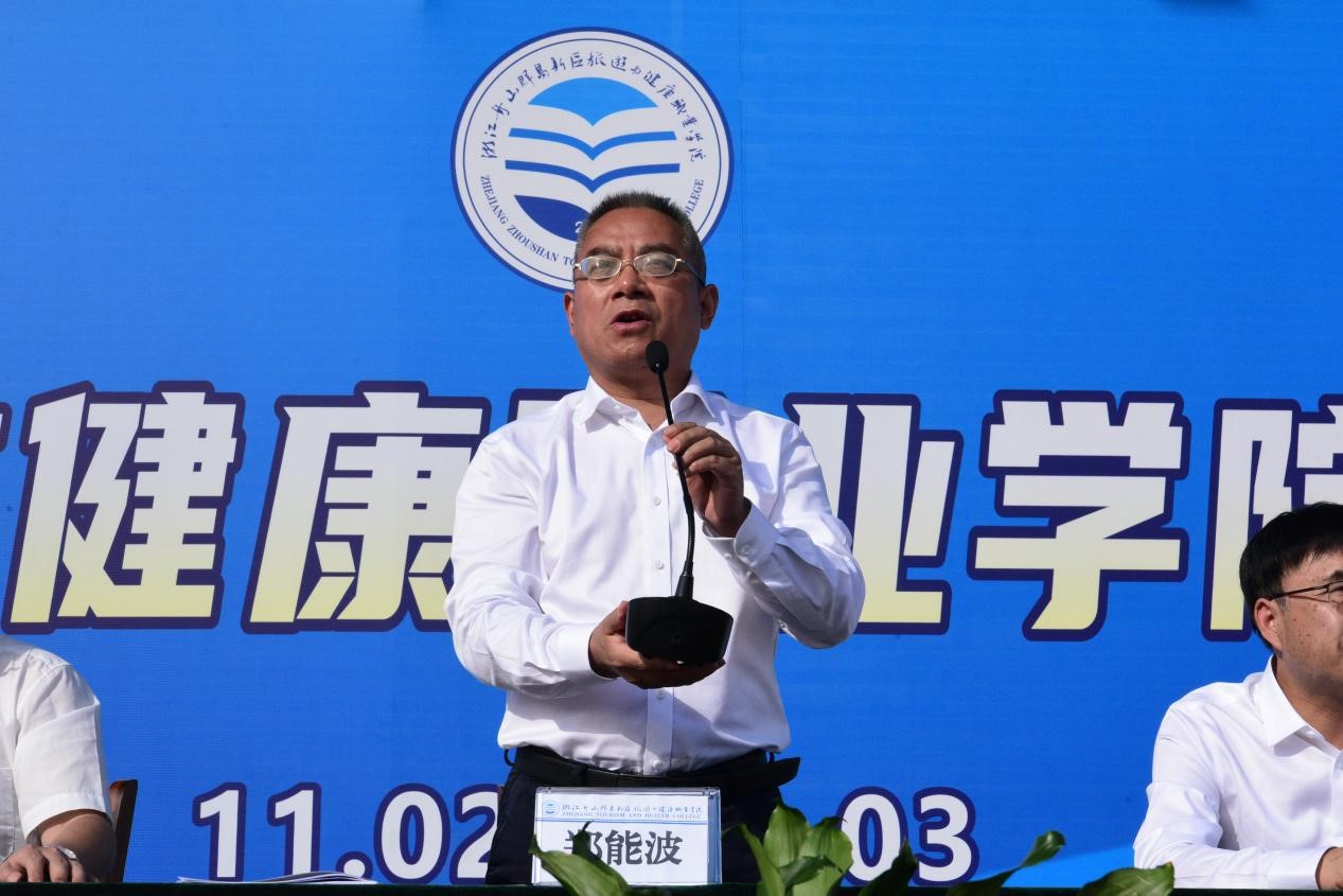 校党委副书记、校长郑能波宣布浙江舟山群岛新区旅游与健康职业学院第九届田径运动会正式开幕。
