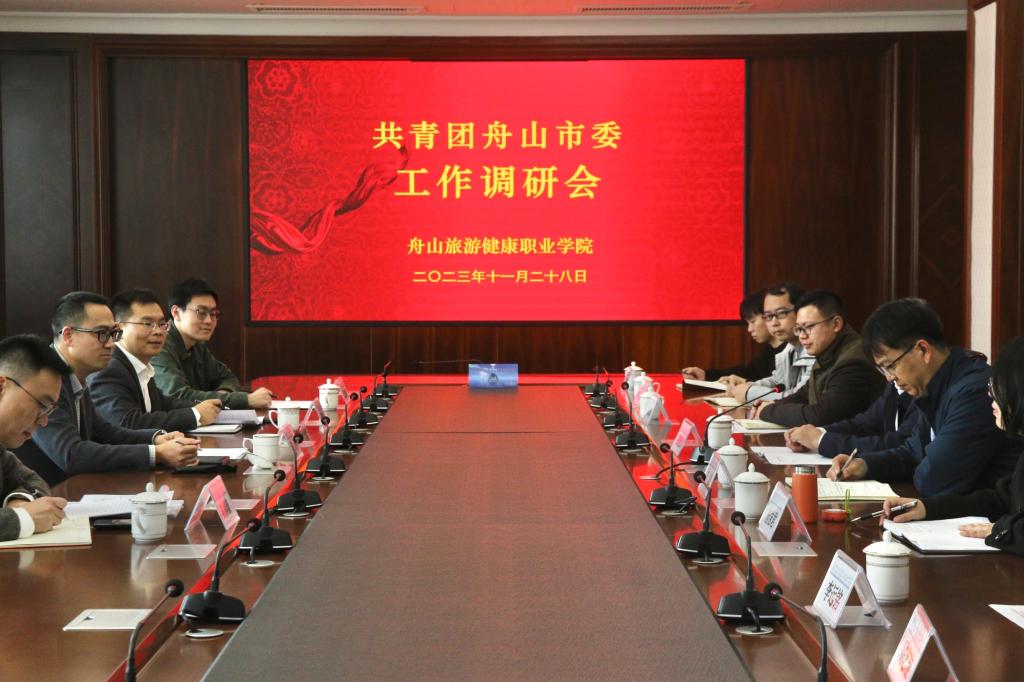 2023年11月28日,共青团舟山市委书记陈涛,副书记薛秀棱、陈祺豪一行4人来我校调研共青团工作。校党委副书记、校长郑能波,校党委委员、纪委书记方波,党委组织部副部长唐洁君,团委书记郑永骥及二级学院分团委负责人陪同校园考察或参加座谈。