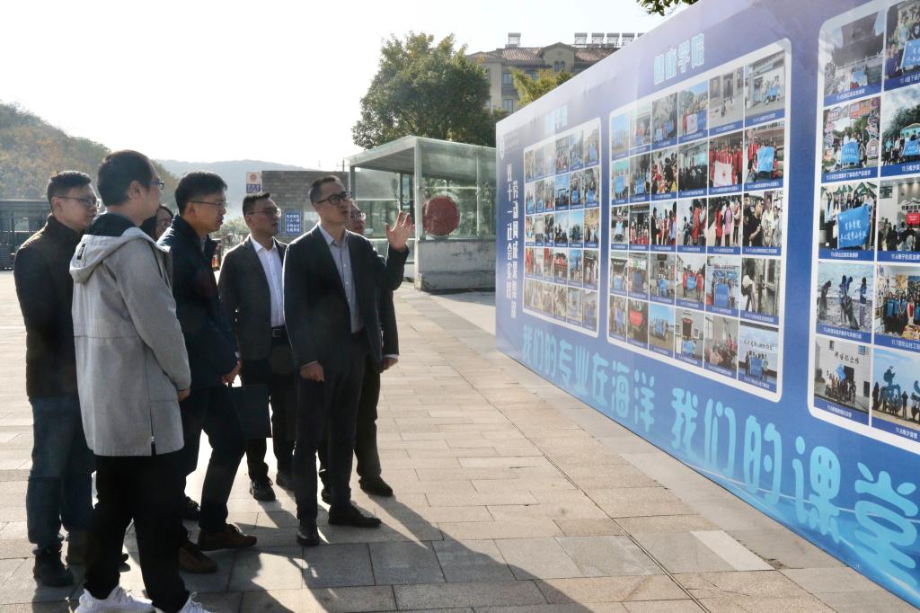 陈涛书记一行实地参观了智慧旅游实训室、健康护理实训室、蚂蚁岛精神文化墙、舟山航空培训中心和校史展示厅,并听取了学校共青团工作专题汇报。