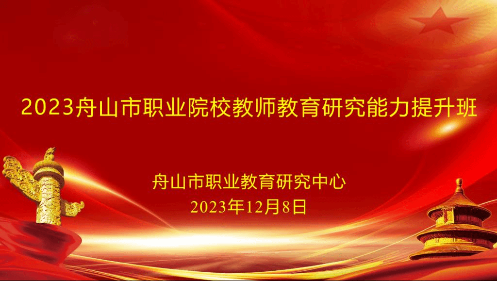 2023年12月8日,由舟山市职业教育研究中心和我校主办,我校高职教育与区域发展研究中心承办的“2023舟山市职业院校教师教育研究能力提升班”顺利召开。舟山市八所职业院校的教师代表参加此次培训。培训以线上线下相结合的形式召开。
