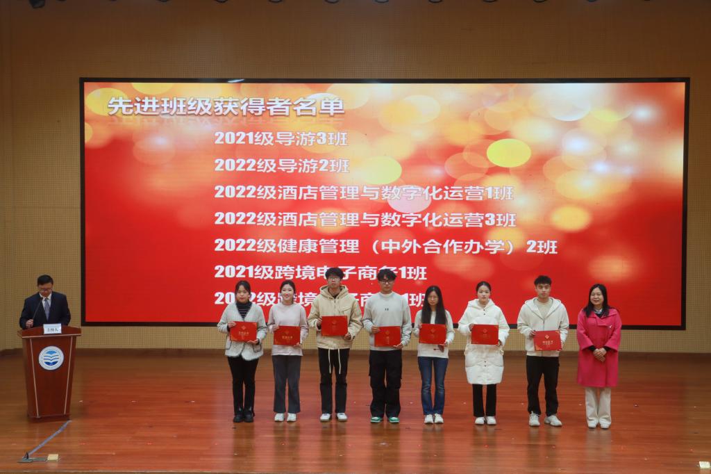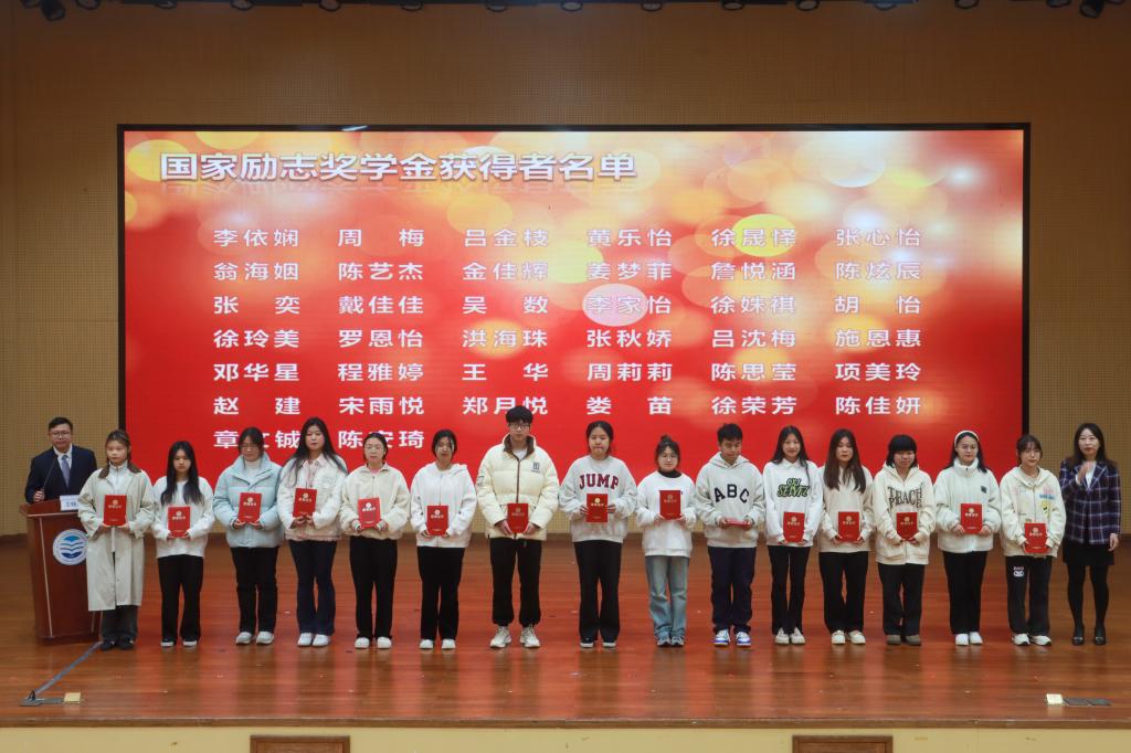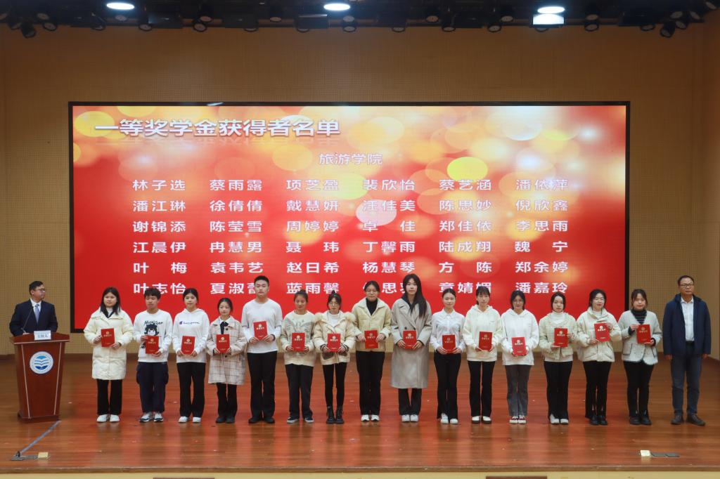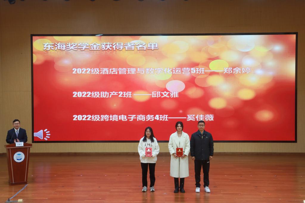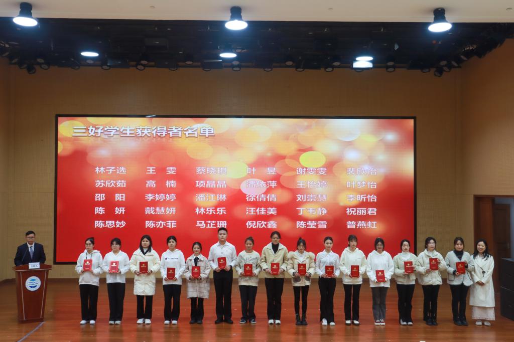 大会在庄严的国歌中拉开帷幕。学生工作部副部长郑永骥宣读了《关于表彰学校2022-2023学年奖学金获得者、先进班级和三好学生、优秀学生干部的决定》。2022-2023学年共评出7个先进班级、185名三好学生、87名优秀学生干部、92名一等奖学金、137名二等奖学金、165名三等奖学金、210名单项奖项金、3名东海奖学金、74名国家励志奖学金、65名省政府奖学金和1名国家奖学金。大会举行了隆重的颁奖仪式,与会领导对获奖学生代表颁发了获奖证书。