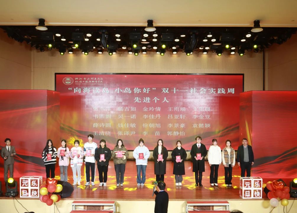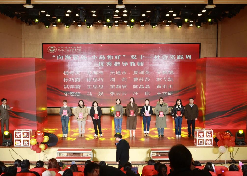 晚会表彰了2023年“向海读岛 小岛你好”双十一社会实践活动的先进个人、优秀指导教师。“八八战略”二十周年大型主题展览优秀讲解员张雅彬同学,为大家深入讲解了舟山在“八八战略”指引下发生的精彩蝶变。