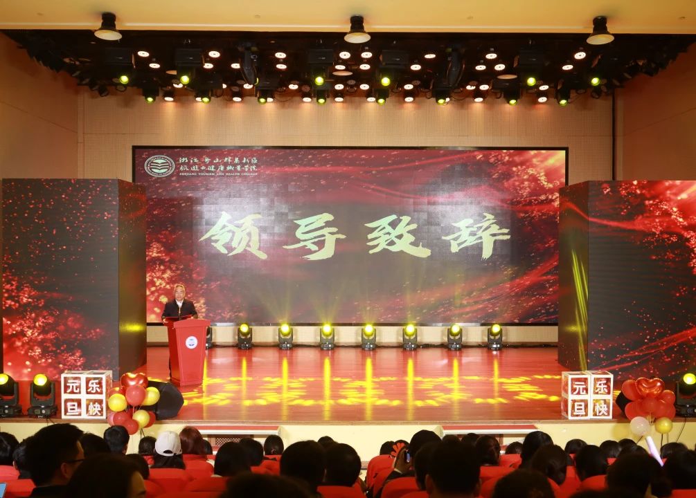晚会在大学生艺术团的舞蹈中拉开序幕。郑能波校长发表新年致辞。他向广大教师和全体学子致以节日的问候,用“团结”“担当”“创新”三个关键词深刻总结了学校过去一年里取得的一系列成就,对全体师生的共同努力给予了充分肯定。他指出,在新的一年里,学校将继续坚定初心使命,改革创新,完善“三全育人”大格局,推动学校高质量发展,并希望全体师生能在新的一年携手同行,再创辉煌。
