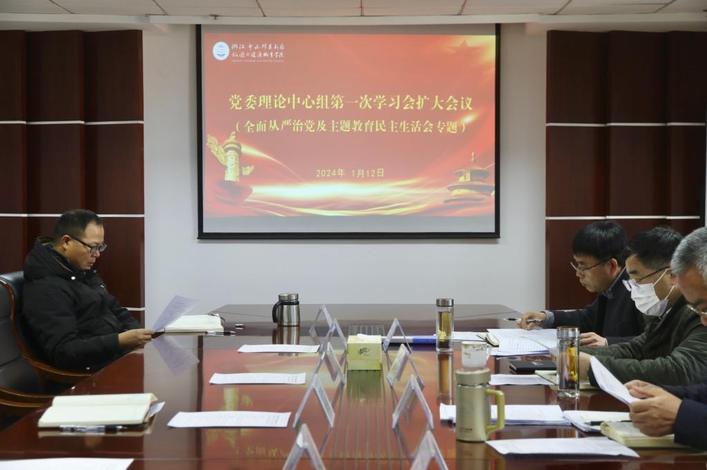 1月12日,学校党委理论学习中心组举行了全面从严治党及主题教育民主生活会专题学习会。校党委理论学习中心组成员参加学习会,校党委书记姚奇富主持学习会并讲话。