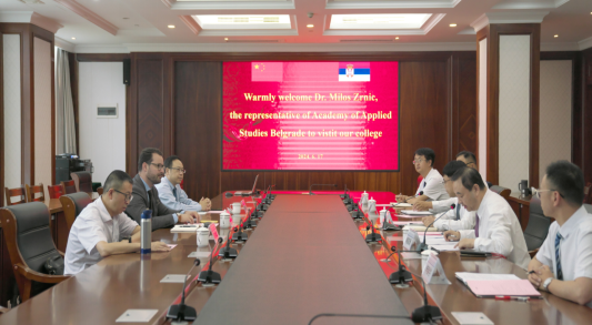 2024年6月16日至17日,塞尔维亚贝尔格莱德应用技术学院代表Dr. Milos Zrnic、浙江省外事办经济与新闻处处长张汶、舟山市人民对外友协秘书长张尔翼等一行3人来我校交流访问。学校党委副书记、国际交流与合作中心主任张朝阳,科研与社会服务处、健康学院和国际交流与合作中心相关负责人参加交流活动。