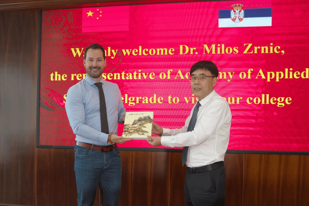 最后,我校向塞尔维亚贝尔格莱德应用技术学院代表赠送礼品并合影留念。