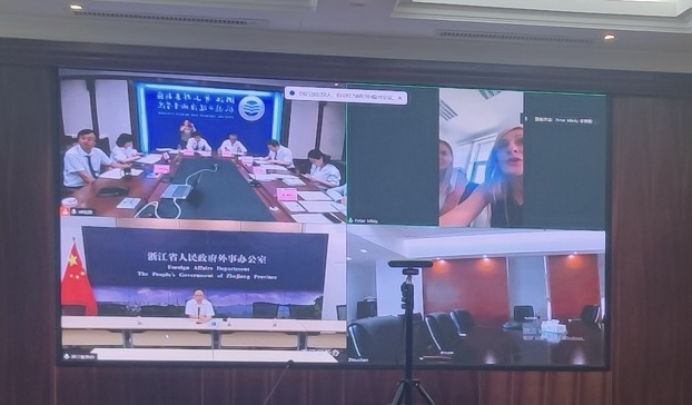 为了推进与塞尔维亚贝尔格莱德应用技术学院的交流合作,2024年7月9日下午,我校外事办公室、国际交流与合作中心组织召开与塞方的合作推进视频会议。浙江省外事办经济与新闻处处长张汶、舟山市人民政府外事办公室副主任熊华峰等、塞尔维亚贝尔格莱德应用技术学院国际合作处副处长Andrea Zerajic等共同参会,商讨推进我校与塞尔维亚贝尔格莱德应用技术学院的交流合作事项。学校党委副书记、校长郑能波,党委副书记、国际交流与合作中心主任张朝阳,健康学院院长李慧刚和国际交流与合作中心成员参加会议。