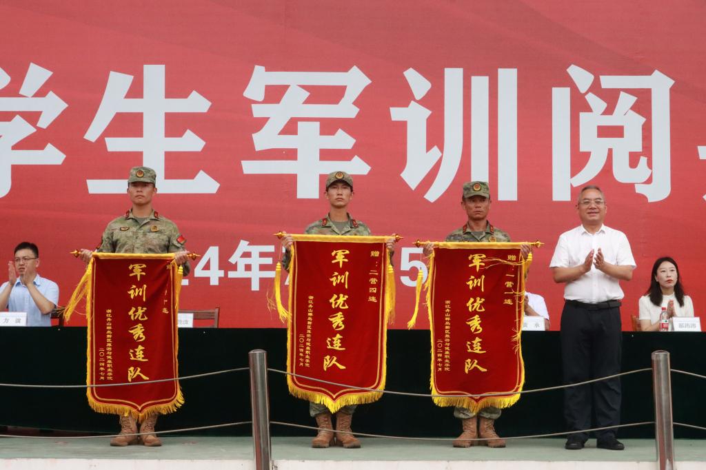 2024年7月15日上午,2023级学生军训阅兵仪式在学校田径场隆重举行。学校党委副书记、校长郑能波,学校党委副书记张朝阳,学校党委委员、纪委书记方波,学校党委委员、副校长黄承,朱家尖街道人武部副部长秦素梅,教务处处长邬玮玮,全体承训教官,各学院副书记、班主任、辅导员及全体参训学生参加了本次仪式。仪式由学工部(人武部)部长乐优捷主持。