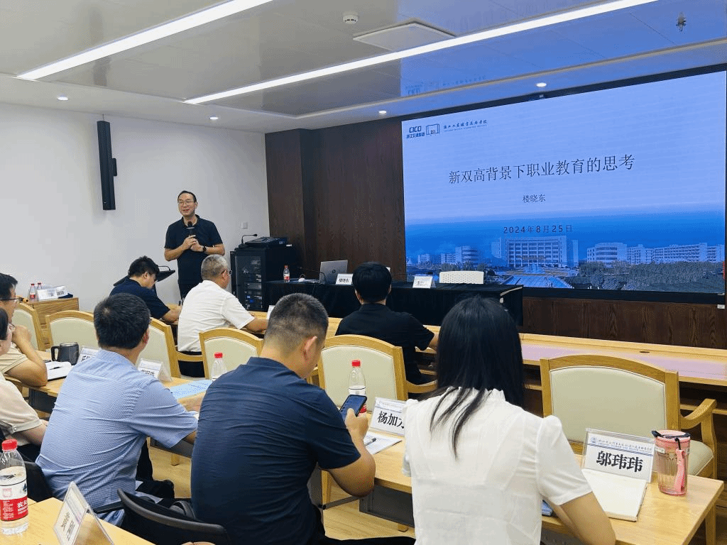 郑能波校长在会前动员中指出,职业教育内涵创新是新时代赋予职业院校的历史使命,也是职业教育主动服务国家战略,服务经济社会发展的必然选择。根据国家“一体两翼五重点”的战略布署,我们应以更加开放、创新、担当、协作的姿态,推动职业教育事业的持续发展。姚奇富书记作了主题为《教学改革何为:新赛道、新融合、新路径》的开班讲座,分析了职业教育转型提升的当下,为加强复合型创新人才的培养,落实好教育强国建设和新时代职业发展的部署,学校应积极探索专业融合新路径,推动金专、金课、金师、金地、金教材的“五金”创新,以新思路、新打法、新赛道,催生人才培养体系建设的新动能。