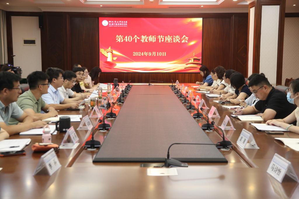 本次座谈会以“大力弘扬教育家精神,加快建设教育强国”为主题。会上,教师代表们结合自身情况,分别就教师培训报销流程、师生竞赛、专业发展、校企合作、教学资源的整合运用等方面进行了深入的交流和探讨,为学校高质量发展建言献策,座谈会现场气氛热烈。