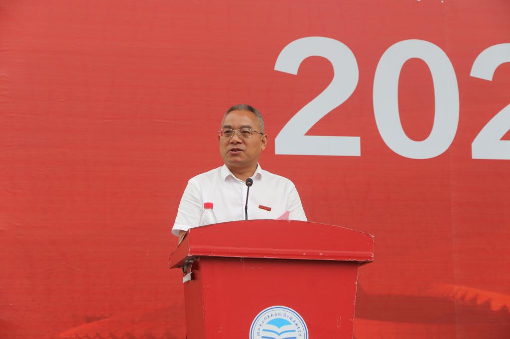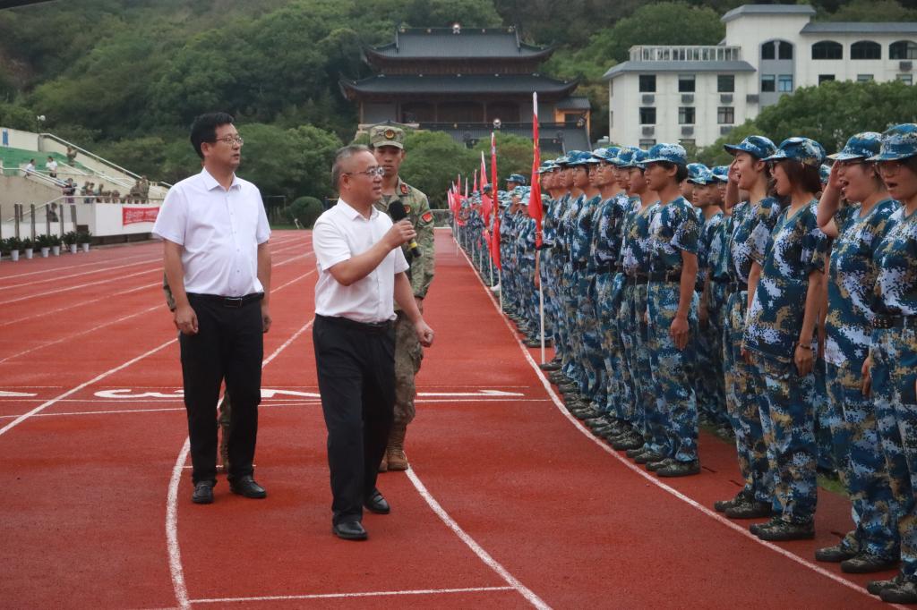 学校党委副书记、校长郑能波发表了重要讲话。他代表学校向全体新生致以最诚挚的欢迎,对承训教官们致以衷心的感谢,并向全体参训学员以及荣获表彰的先进集体和个人致以热烈的祝贺。郑校长深情回顾了学校十年的发展历程和辉煌成就,鼓舞同学们以坚定的意志和不懈的努力,共同谱写学校发展的新篇章。为此,郑校长向同学们提出了三点期望。一是志存高远,做挺膺担当的时代青年。他希望同学们能以中国新一代奥运冠军形象为榜样,勤学求知,掌握真才实学,在为祖国和人民奉献中实现人生价值。二是自强不息,做勇于奋斗的拼搏青年。他希望同学们能做自己的“天命人”,用勇于奋斗的姿态和自强不息的精神,走好自己的取经路,努力成为可堪大用、能担重任的栋梁之才。三是修身正己,做崇德向善的明德青年。郑校长指出,品德是做人之根本,修身立德,方能成参天大树,要将正确的道德认知、自觉的道德养成、积极的道德实践紧密结合。最后,郑校长勉励同学们多放下手机,多走向操场,多走进图书馆,不负盛世,奋斗其时!