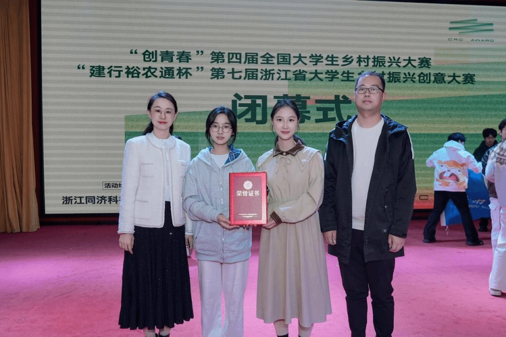 近期,“创青春”第四届全国大学生乡村振兴大赛暨“建行裕农通杯”第七届浙江省大学生乡村振兴创意大赛在浙江同济科技职业学院圆满落幕。我校教师王珊珊、林弋凯指导的团队项目《海岛共富博物馆》脱颖而出,斩获主体赛省赛金奖,并获得国赛银奖。这也是我校连续三届获得省赛金奖,并首次获得国赛奖项。