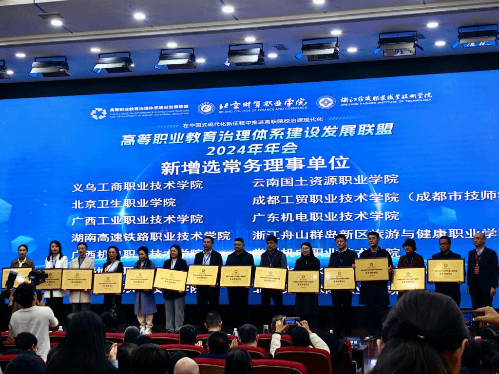 2024年11月30日至12月1日,高等职业教育治理体系建设发展联盟2024年年会在宁波召开。来自全国100余所高职院校、企业和研究机构300余人参加此次年会,教育部职业教育发展中心副主任李静波应邀出席会议并做主题报告。大会新增选了12家联盟常务理事单位,我校成功当选。