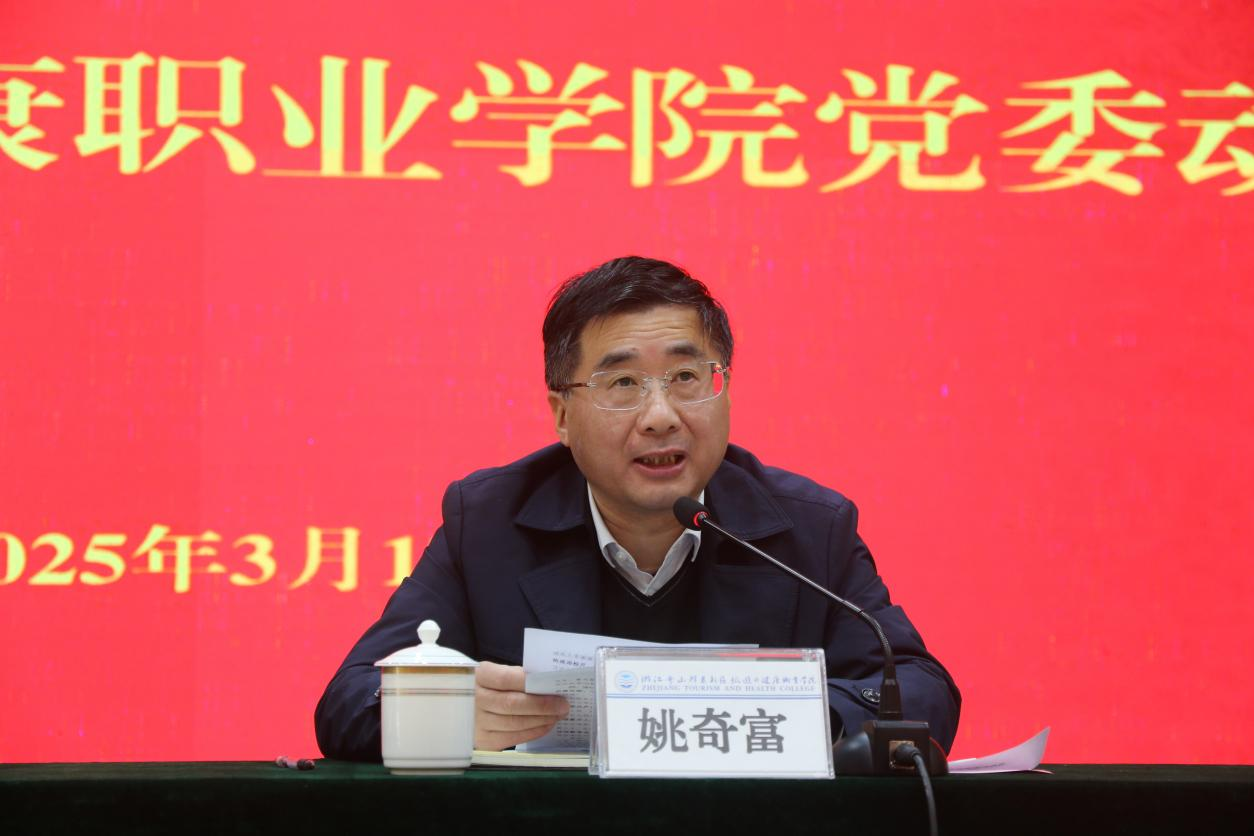 根据市委统一部署,2025年3月17日下午,市委第二巡察组巡察浙江舟山群岛新区旅游与健康职业学院党委动员会召开。会上,市委第二巡察组组长贺贤锋作动员讲话,对深入学习贯彻习近平总书记关于巡视工作重要论述,全面落实党的二十届三中全会精神,高质高效完成好市委本轮巡察工作提出要求。市委巡察办副主任屠军杰讲话。学院党委书记姚奇富主持会议并作表态发言。