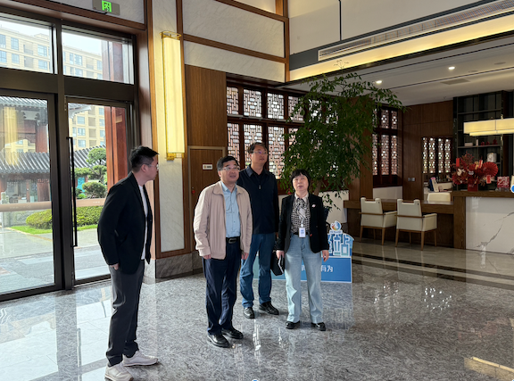 调研团队一行首先参观了禾仁-庭闱乐养老院的环境设施,深入了解其运营模式和服务特色。养老院温馨舒适的居住环境、适老化设计的细节以及智能化照护设备得到校方高度评价。周伯翰总经理介绍,该院成立于2023年,现拥有员工70人,在居老人112人,秉承“医养结合、人文关怀”理念,致力于打造高品质养老服务标杆。