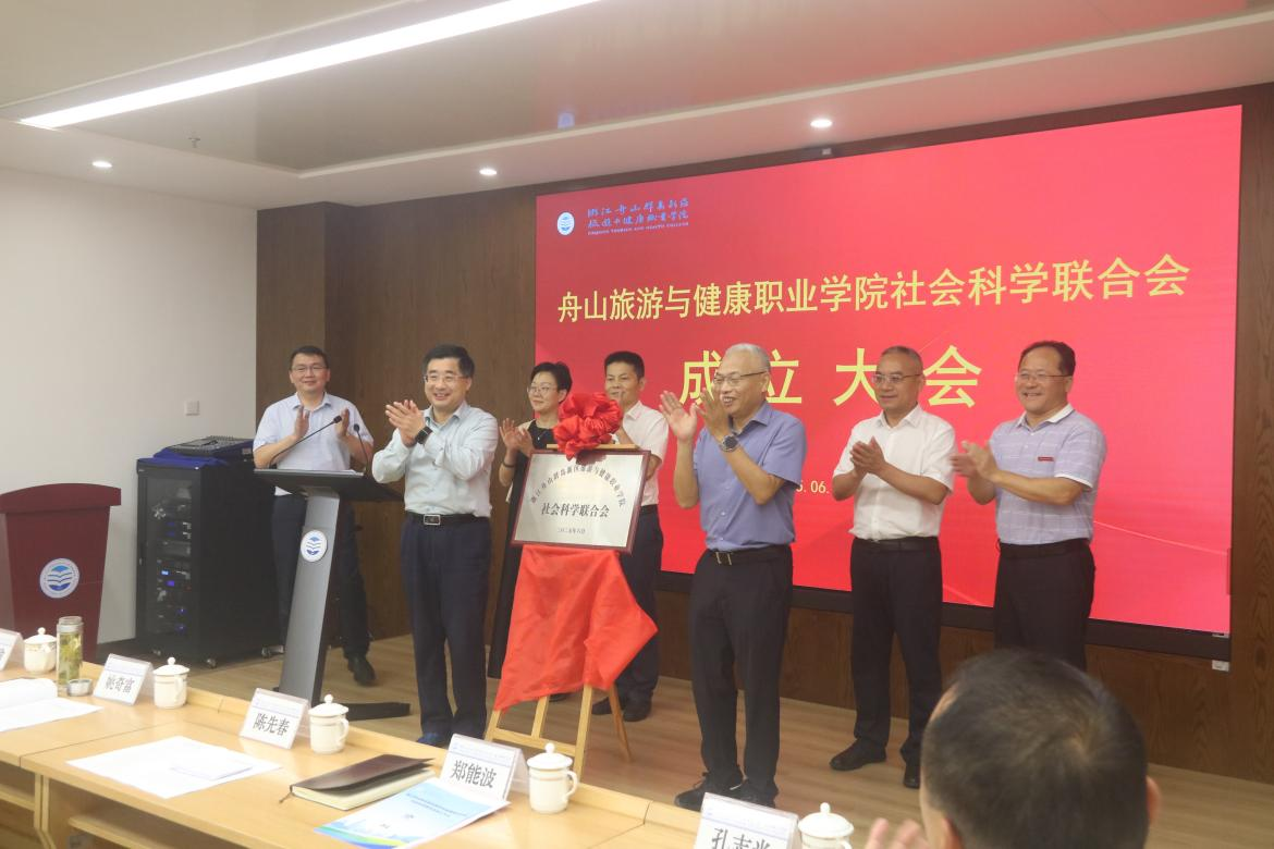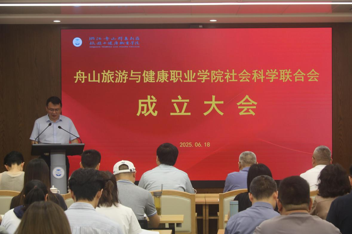 2025年6月18日下午,浙江舟山群岛新区旅游与健康职业学院社会科学联合会成立大会在学校求真楼三楼多功能会议厅隆重举行。浙江省社科联副主席陈先春、学校党委书记姚奇富出席会议并讲话,校长郑能波当选为学校社科联第一届理事会主席,舟山市社科联副主席林备瑜、浙江国际海运职业技术学院党委副书记孔志光、浙江海洋大学人文社科处副处长方晨等领导和嘉宾受邀出席会议并见证揭牌。社科联会员代表参加大会。会议由副校长孔志华主持。