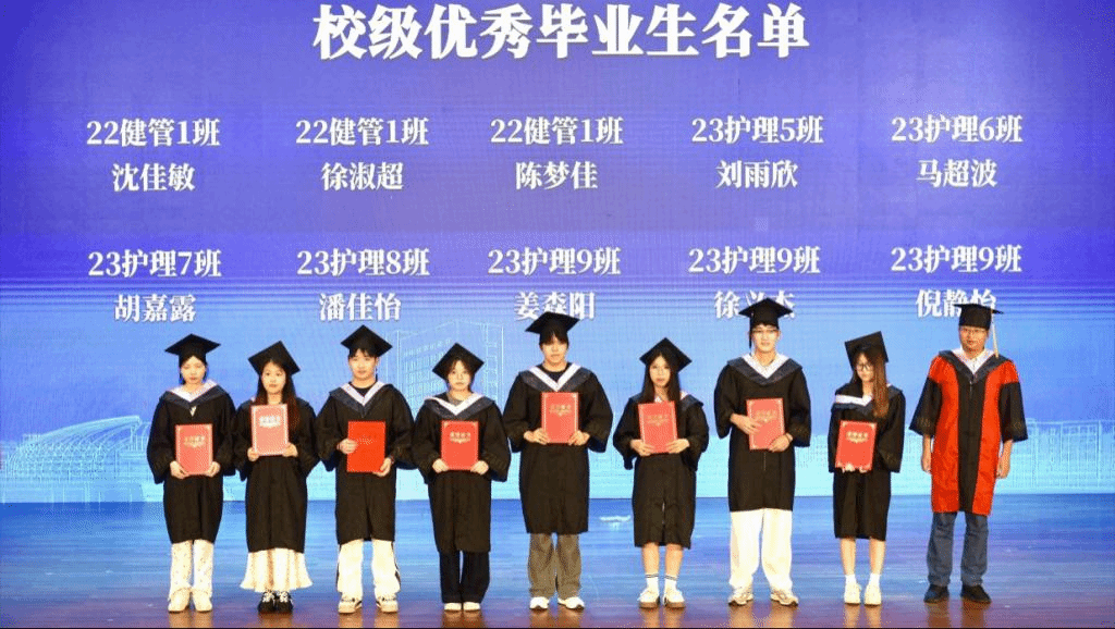 下午两点,副校长黄承宣布毕业典礼正式开始。全体师生起立,高唱国歌。随后,对省优秀毕业生、校优秀毕业生和学校就业之星进行表彰,充分肯定他们勤奋求知、勇于实践的优秀品质。