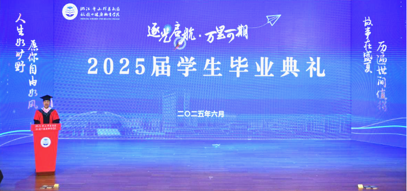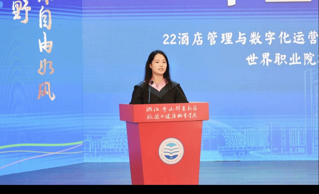 22酒店管理与数字化运营1班余易敏同学作为毕业生代表发言,深情回顾了在校成长的难忘经历,表达了对母校和师长的感激之情,并号召全体毕业生以奋斗为楫,将个人理想融入时代洪流;以母校为荣,让“旅健星光”闪耀在祖国大地。