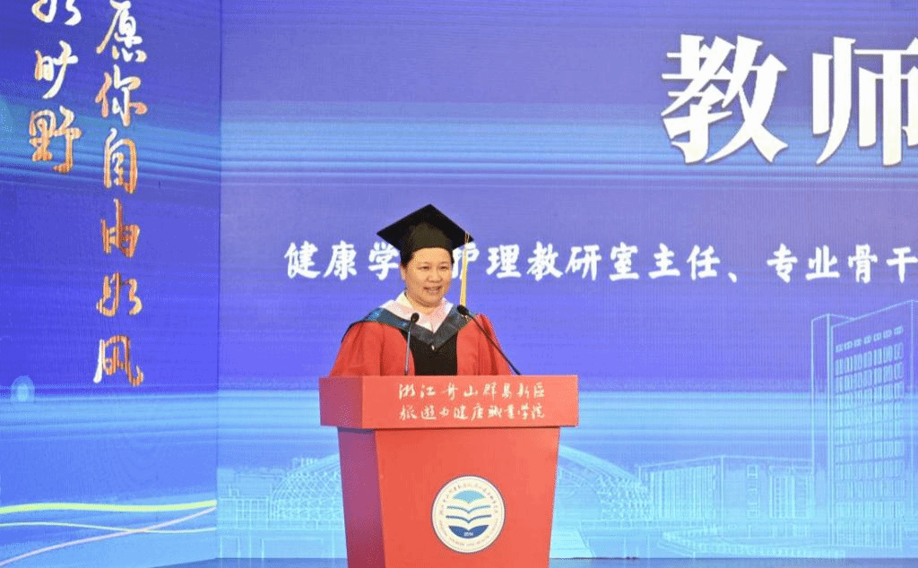 健康学院护理教研室主任张敏老师作为教师代表上台发言,看着台下熟悉的面孔,仿佛又看到了在技能大赛中勇夺佳绩的自信笑容。她寄语毕业生永葆求知之心,让学习成为一生的习惯;勇担时代之责,诠释职业教育的价值与担当;坚守奋斗之志,用实干书写青春答卷。