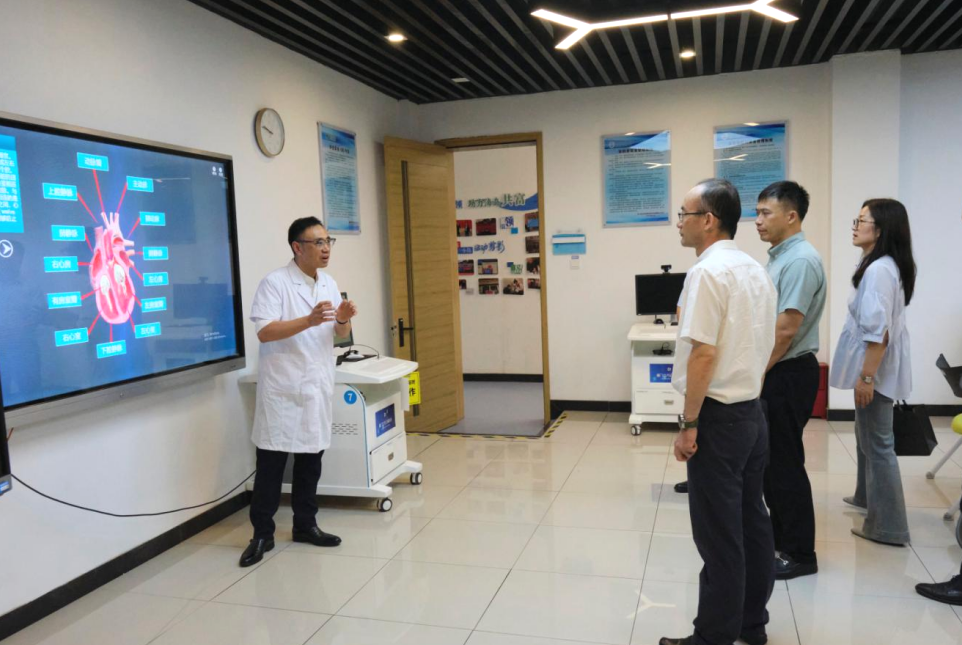 调研组一行首先实地参观了旅游学院“智慧旅游”实训基地和健康学院“康养护理”实训中心。相关负责人重点向调研组领导介绍了学校实训设备设施的功能,以及紧扣舟山海洋产业发展需求,充分发挥自身专业优势,在产教融合、技能培训、社会服务等方面的创新实践,用具体事例汇报了我校在产教融合、校企合作、非遗文化、志愿服务等方面的特色成果。