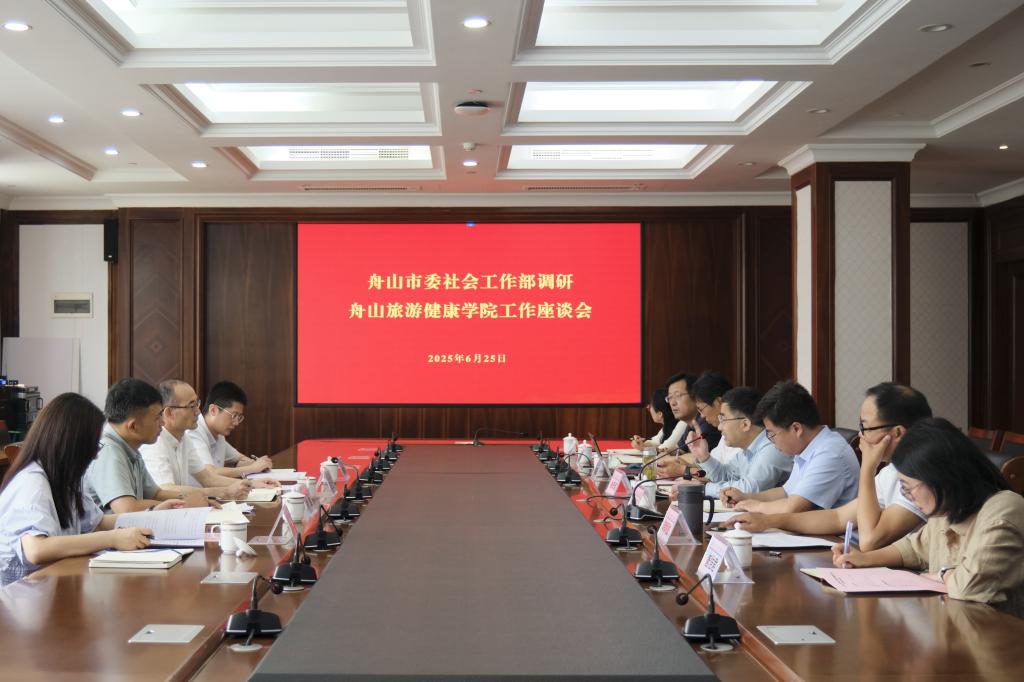 6月25日上午,舟山市委副秘书长(兼)、市委社会工作部常务副部长、市委两新工委书记张立,市委社会工作部副部长钟淼一行4人莅临我校调研,就深化校地合作、志愿服务、推进海岛两新党建等工作开展专题调研。校党委书记姚奇富、副校长黄承、校海岛共富学院执行院长陈爱国等校领导陪同调研。