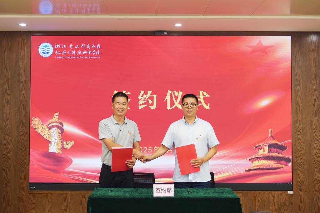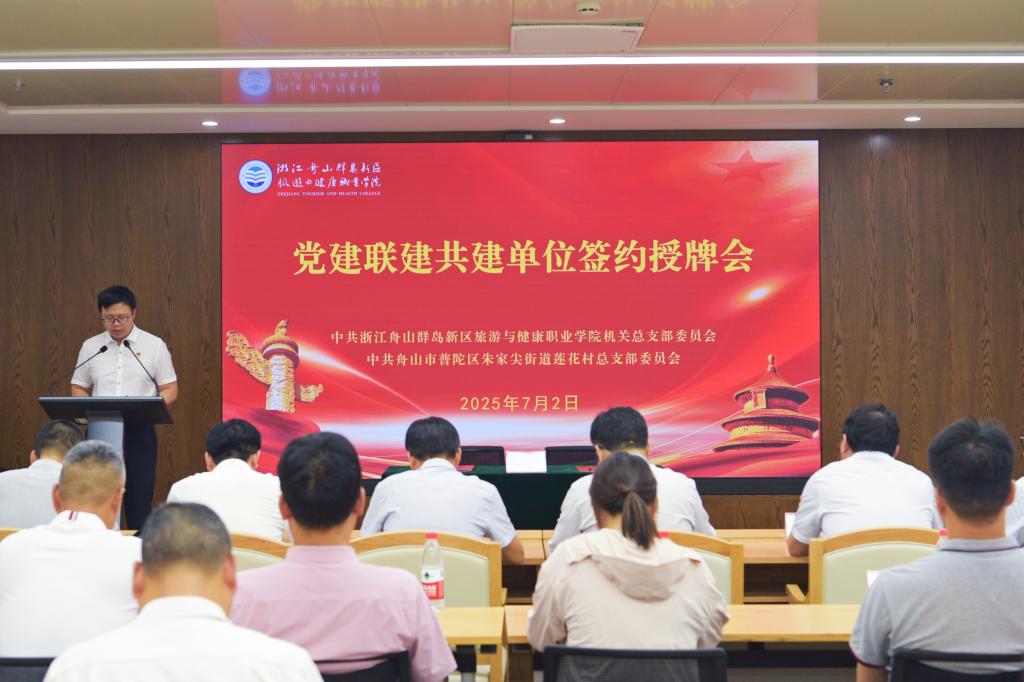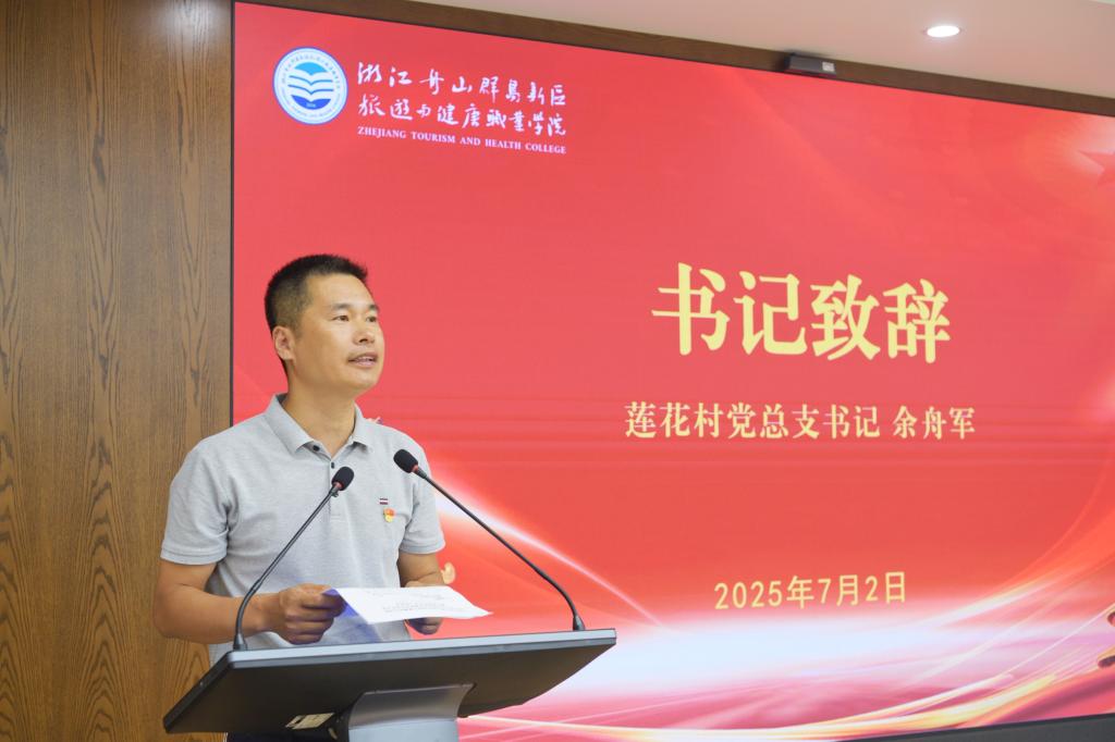 余舟军书记在致辞中表示,莲花村作为朱家尖街道最大行政村,依托山海资源,已形成渔业与文旅融合的特色产业,双方将以党建联建为纽带,通过组织联建、资源融合、服务民生三大举措,推动学院专业优势与莲花村实践平台深度对接,助力产业转型与乡村振兴。校地携手打造产学研融合典范,让共建成果惠及群众。