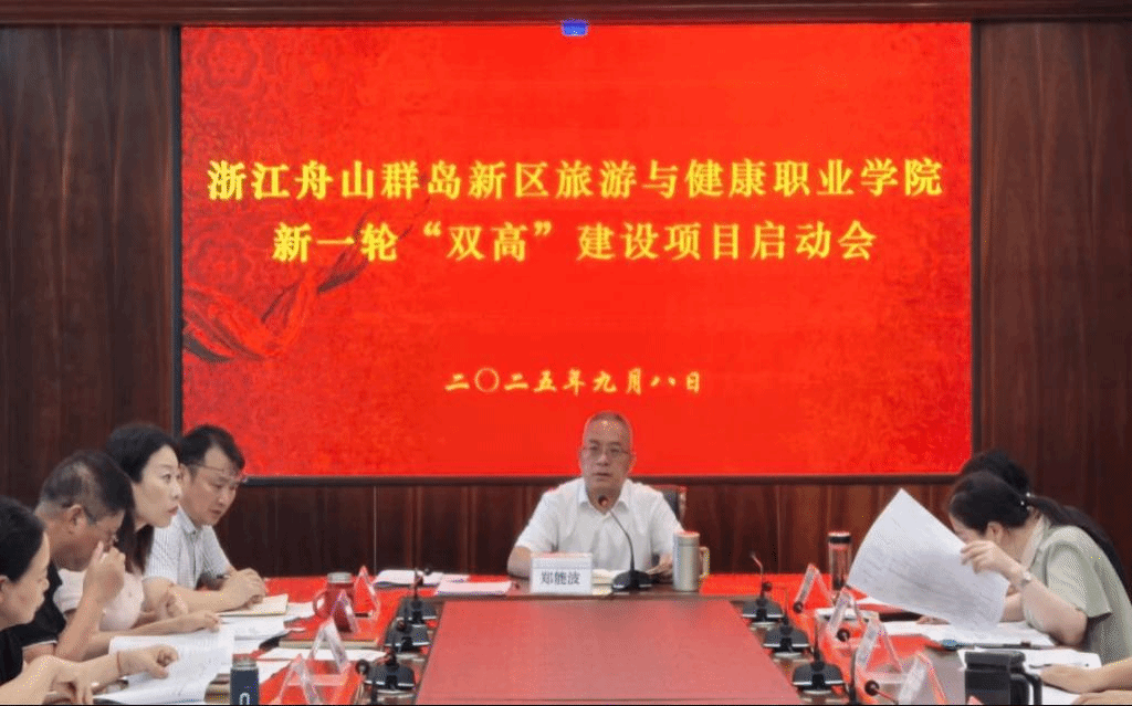 2025年9月8日下午,我校新一轮“双高”建设项目启动会在二楼多媒体会议室召开。校长郑能波主持会议并讲话,校党委副书记张朝阳、副校长孔志华,各相关职能部门和教学单位主要负责人及相关人员参加会议。