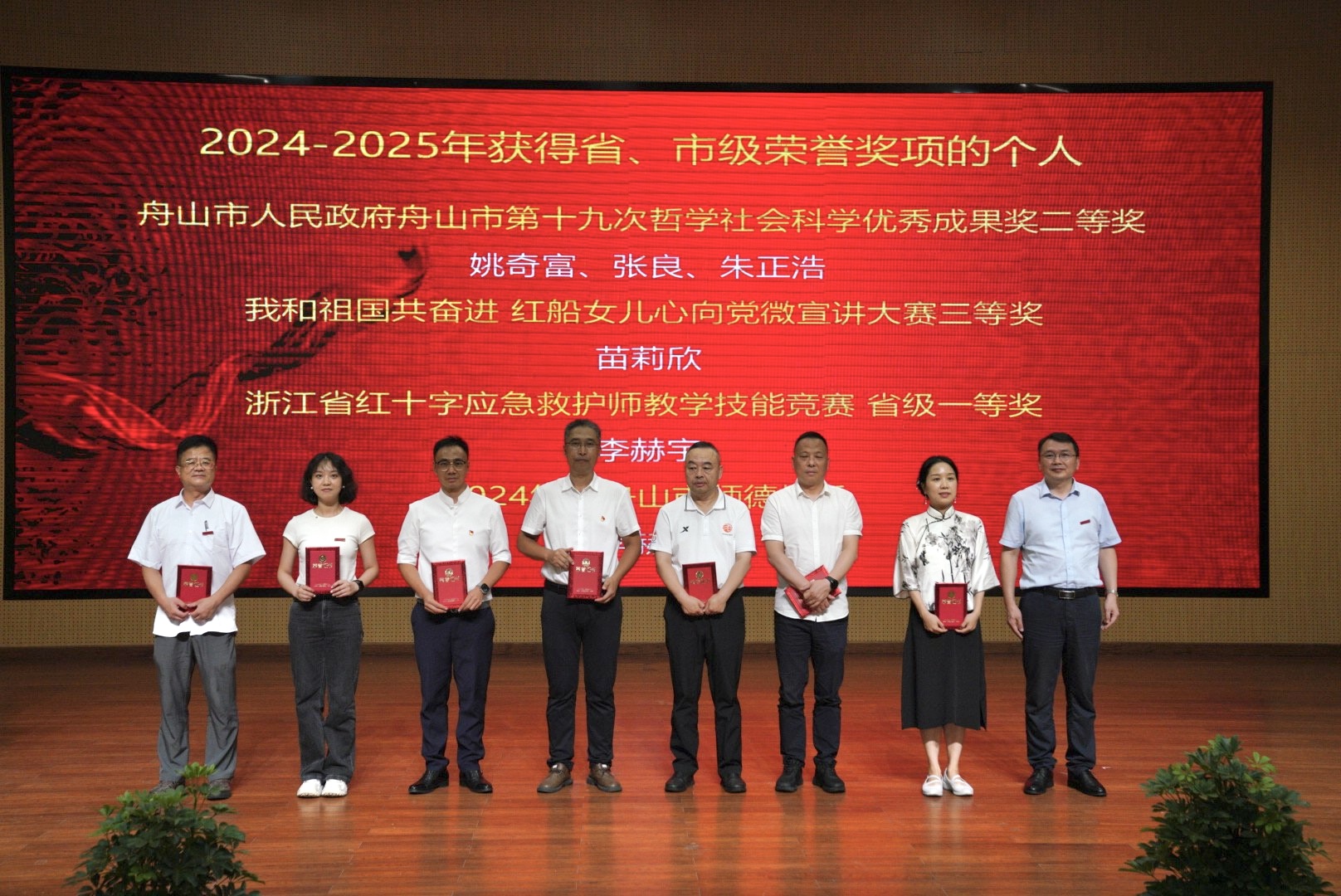 姚书记系统梳理了国内外教育发展的机遇与挑战,并深入剖析了我校立足舟山群岛,如何发挥区域人才优势深化产教融合,在教育高质量发展中所能作出的贡献。最后,他就如何进一步提升学校教育教学质量,对全体教职工提出了四点希望:一要坚定理想信念,做立德树人的“大先生”;二要深耕主责主业,做技艺精湛的“传道者”;三要心怀仁爱之心,做学生成长的“引路人”;四要勇担时代使命,做学校发展的“奋斗者”。