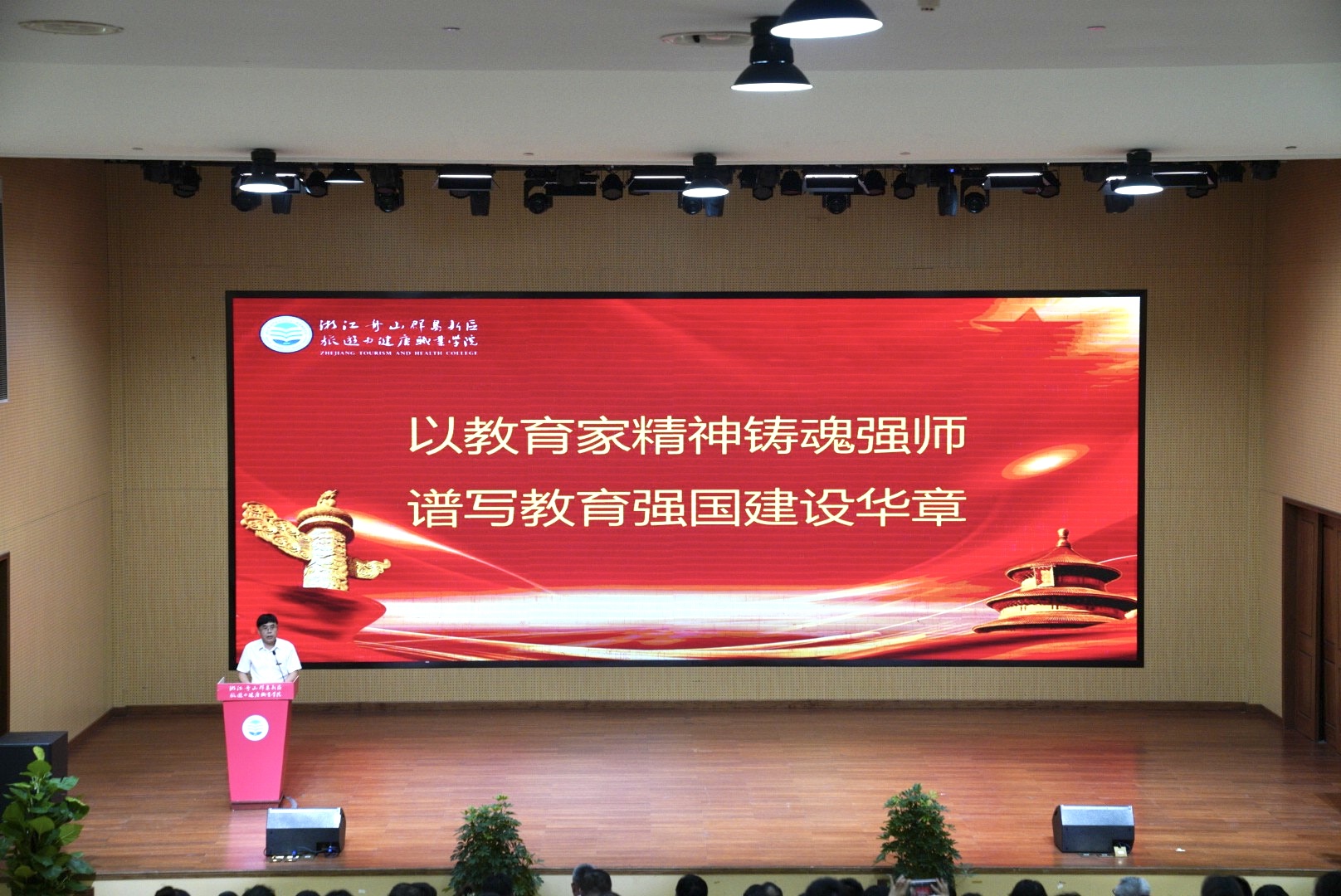 今年教师节的主题是“以教育家精神铸魂强师,谱写教育强国建设华章”。为深入贯彻上级关于庆祝第41个教师节活动的部署安排,2025年9月9日下午,学校在致远大讲堂隆重召开庆祝第41个教师节暨新学期教职工大会。校党委书记姚奇富、校长郑能波、副校长孔志华出席,校党委副书记张朝阳主持大会,全体教职工参加了大会。
