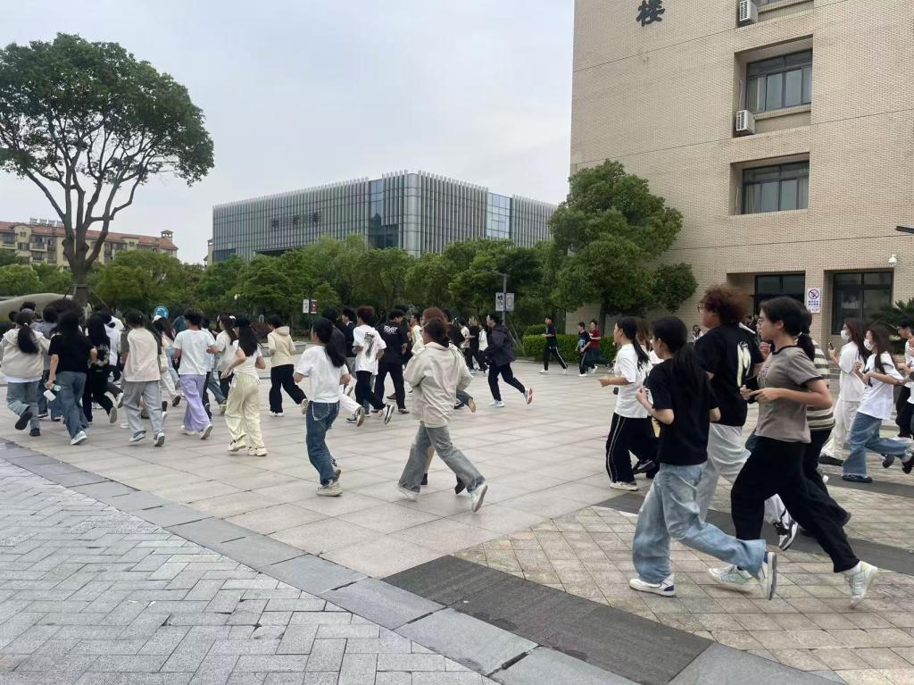 下午16:35,演练正式开始。本次演练模拟突发地震状态下的逃生组织,正在上课的同学们迅速反应,采取防护措施,等待地震波过去。当集合哨响起,学生们在老师的指挥下,按照预定的疏散路线,用手或其他物品护住头部,弯腰低姿态、快速有序地从教室撤离,向操场等空旷地带疏散。各班迅速清点人数,并向演练总指挥报告,确保无一人遗漏。整个疏散过程,师生们沉着冷静、配合默契,快速安全到达指定集合地点。