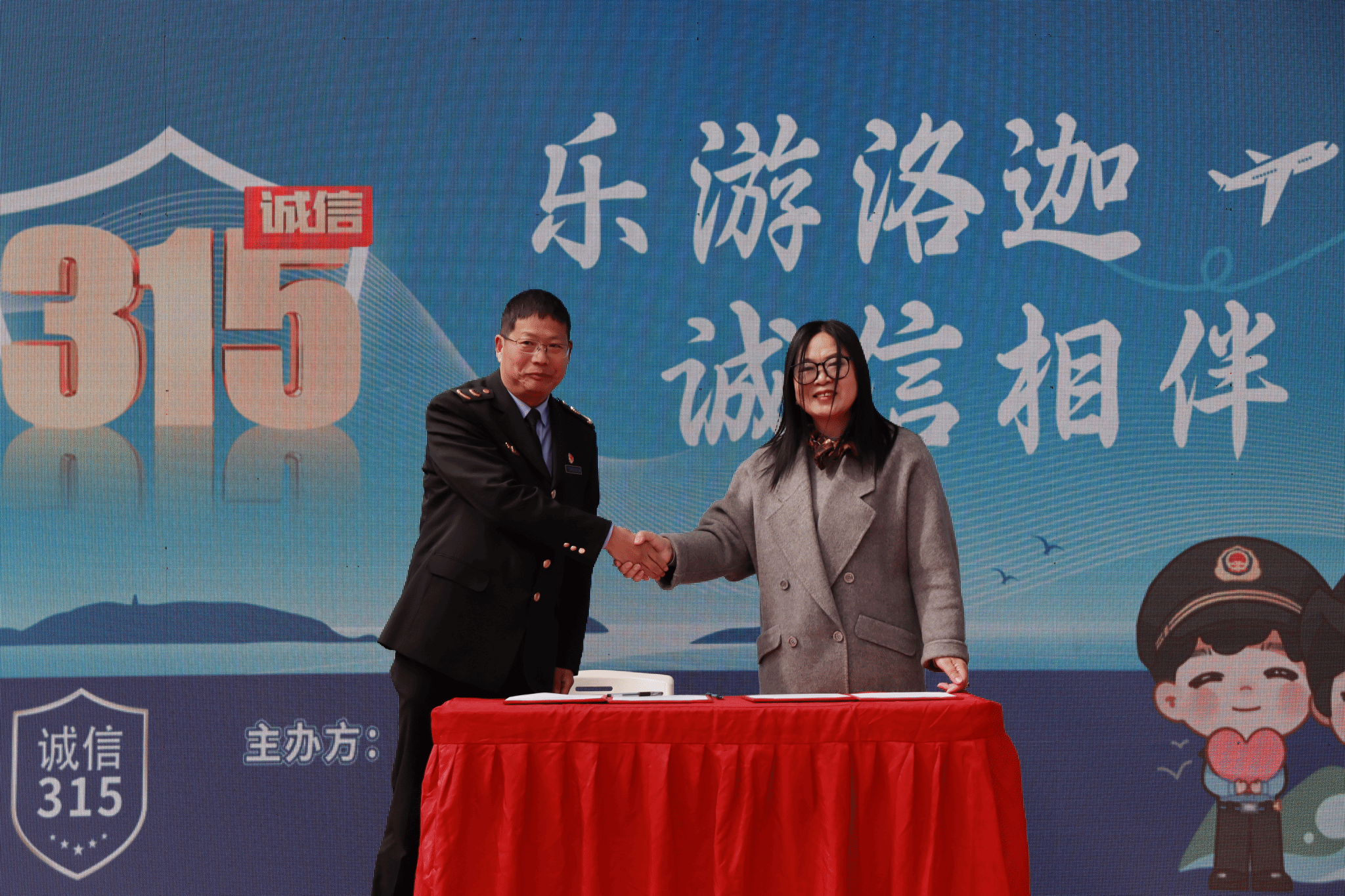 作为本次活动的重要环节,我校旅游学院院长杨奇美与舟山市市场监管局普陀山分局局长戴跃波正式签署合作协议,双方携手打造诚信实践基地,在消费市场管理、诚信宣传、志愿服务等方面深化合作,充分发挥学院专业优势与人才资源,培育兼具专业素养与诚信品格的文旅服务人才,为普朱景区提升服务品质、构建长效诚信体系提供坚实支撑。