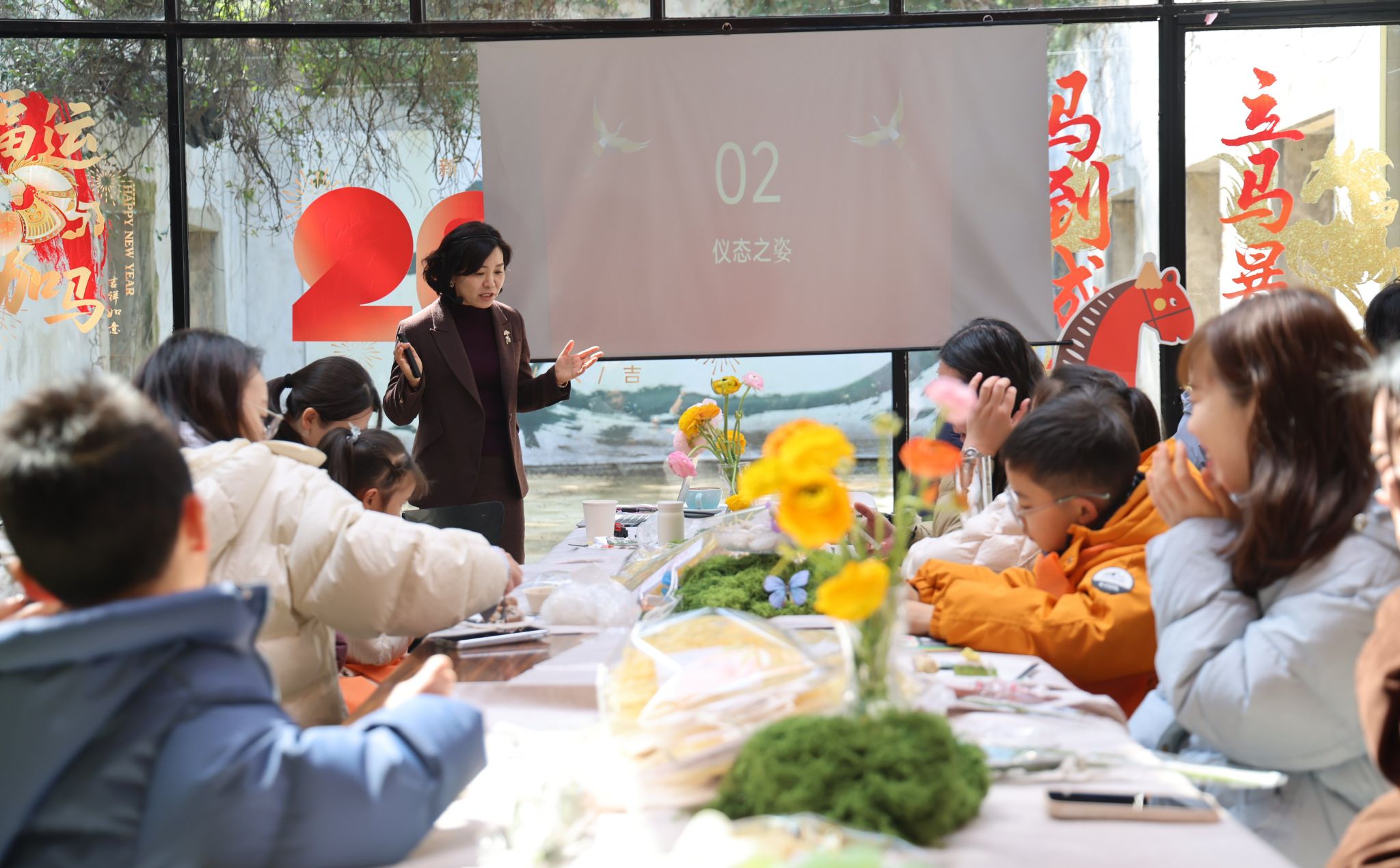 培训紧扣职场形象、优雅仪态、色彩搭配、礼仪美育四大核心,现场鲜花簇拥、咖啡飘香、甜点精致,在轻松雅致的氛围中,开启职场礼仪与亲子美育的美好之旅。刘杨老师以专业讲解+趣味互动的形式,带领女职工学习职场仪容仪表规范、优雅仪态技巧与高效色彩搭配方法,全面提升职业形象与自信气场。现场还特设了亲子互动环节,“优雅小镜子”“最美问候小使者”“礼仪小剧场” 等趣味游戏,让家长与孩子在默契配合中学习礼仪知识,传递感恩心意。既让女职工掌握亲子美育实用方法,促进亲子沟通与和谐家风营造,也让孩子们在欢乐中习得文明礼仪,感受美学魅力。