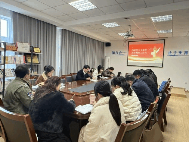 本次会议围绕三项议程展开。一是传达学校“双高”项目建设工作推进会精神。李长亮院长传达了学校关于“双高”项目建设的部署要求,强调“双高”建设是当前学校发展的重中之重,全院教职工要深刻领会会议精神,明确目标任务,主动对标对表,结合马克思主义学院实际,高质量完成年度任务,为学校双高建设贡献马院力量。