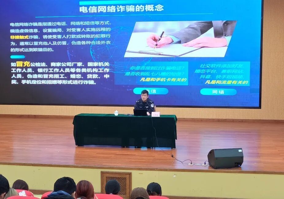 活动期间,学校邀请了普陀山公安局民警庄浩扬,为同学们做了题为《电信网络诈骗普法宣传》的讲座,用通俗易懂的语言,结合真实典型案例,深入浅出地讲解了国家安全的丰富内涵、维护国家安全的重要意义,以及青少年在日常生活中如何识别危害国家安全的行为、自觉履行维护国家安全的法定义务。针对校园网络使用频繁的特点,专家重点讲解了网络谣言传播、个人信息泄露、网络不良信息侵害等网络安全风险,引导师生规范网络行为,自觉抵制网络违法违规信息,守住网络安全底线。