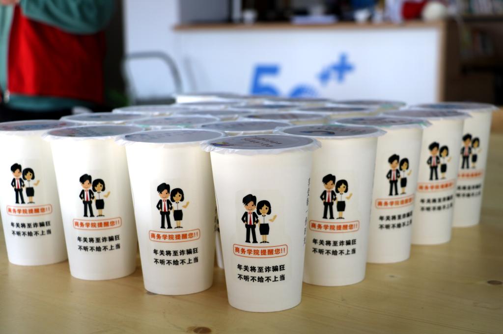 近日,商务学院与校园奶茶店“茶香小憩”合作开展了以“冬日送温暖,爱心暖校园”为主题的反诈骗宣传暨“暖冬行动”。