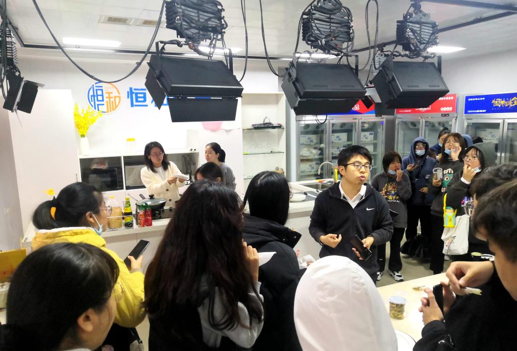 企业参观学习后,学生来到海力生集团恒和食品线下体验店,学习烤鳗鱼制作流程,参观海洋食品制作电商直播间,品尝直播商品,观看电商直播过程,感受舟山海洋食品产业一线员工的工作精神、对海洋食品产业的热爱和对本土文化的坚守。