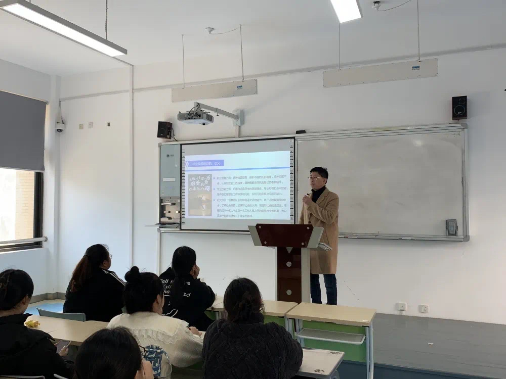 会上,旅游学院副院长黄刚从实习安排、实习期间请假制度、实习中可能存在的问题等方面进行了说明,并着重向同学们强调了实习意义。他结合学校有关文件,从实习任务开始,对实习过程考核管理与实习注意事项等进行了相关解释,并鼓励同学们能够积极、认真参加实习,抓住机会,锻炼自己,利用此次实习机会,为将来做铺垫,将所学的知识用于实践中,以富有活力的精神面貌,顺利完成实习。