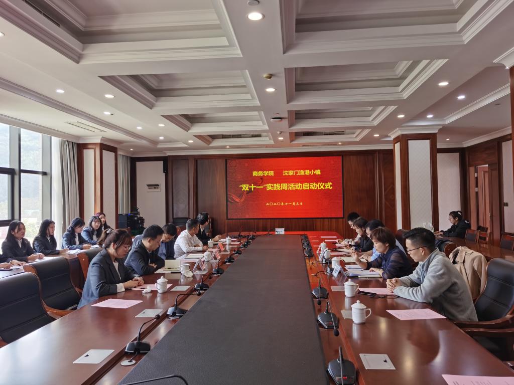 11月3日上午,商务学院“双十一”实践周活动启动仪式在求真楼2楼多媒体会议室隆重举行,来自政府部门、行业企业和商务学院的师生代表共同参加并见证仪式,普陀沈家门渔港小镇创建指挥部执行副总指挥张朝、副校长兼商务学院院长孔志华出席会议。