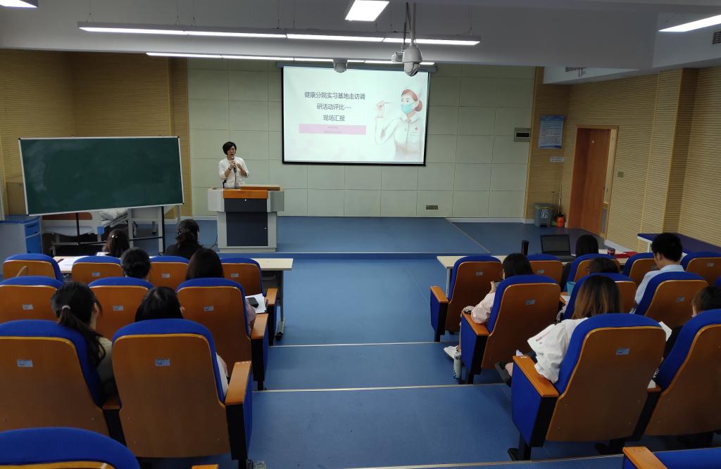 为加强学校与实习基地的联系,促进实习管理,健康学院于8月17日-8月22日,在学院领导的带领下,21名老师冒着酷暑分四路奔赴省内36家合作的实习医院和企业开展了实习基地的走访和调研。走访结束后,为促进相互之间交流,分享调研成果,9月23日下午,学院组织开展了实习基地调研成果汇报评比活动,共16名基地走访老师作汇报,学院院长竺静、副院长马怡婷、副书记郑婷璐担任评委。