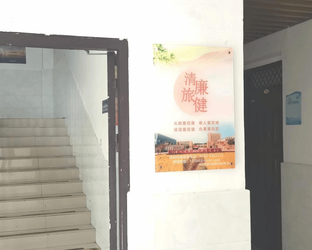 校纪委结合实际,谋篇布局,建立全方位的、立体式的廉政文化阵地。一是以“清廉旅健、你我同行”为主题,将清廉元素融入校园。在办公楼打造“清风室”清廉文化宣教阵地,在教学楼、学生公寓、食堂等布置廉政文化展板,在校园醒目位置布设廉政文化雕塑,使师生在日常生活中品味清廉意蕴,营造“处处是课堂、时时悟廉洁”的浓厚氛围,让廉洁文化浸润人心。二是持续办好“清廉学堂”,讲廉政故事、树廉政新风、立廉政规矩。通过微信公众号“清廉学堂”推送作风纪律小故事、违规违纪案例等,加强对党员干部的廉政教育,不断强化党员干部自觉自律,筑牢不想腐的精神堤坝,夯实不忘初心、牢记使命的思想根基。三是充分挖掘专业特色与反腐倡廉工作的契合点,建设 “一院一阵地”的清廉品牌。将专业特色与清廉内涵相融通,先后指导健康学院打造“中医养身”廉政文化长廊、商务学院建设以“诚信”为主题的廉政文化阵地。