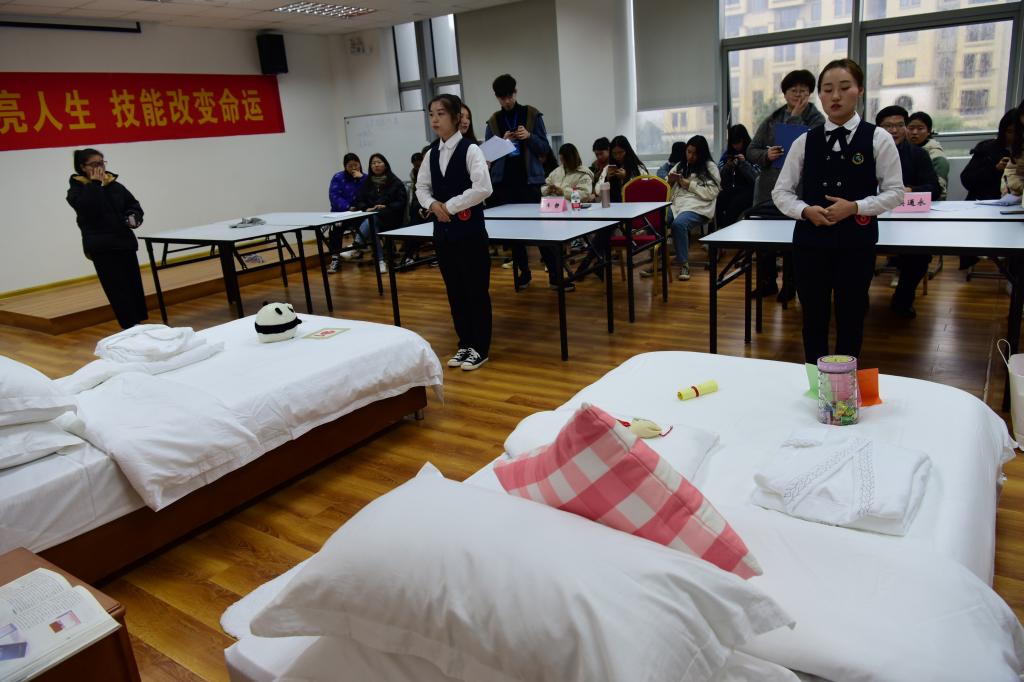 为提高学生的专业技能,为学生提供一个互相学习、互相交流的平台,旅游分院第三届旅游技能节之酒店服务技能大赛于2018年12月26下午在校综合实训楼正式拉开帷幕。旅游分院高度重视此次技能大赛,分院院长侯明贤等相关领导亲临现场观看比赛,勉励各位参赛选手赛出风格,赛出水平。