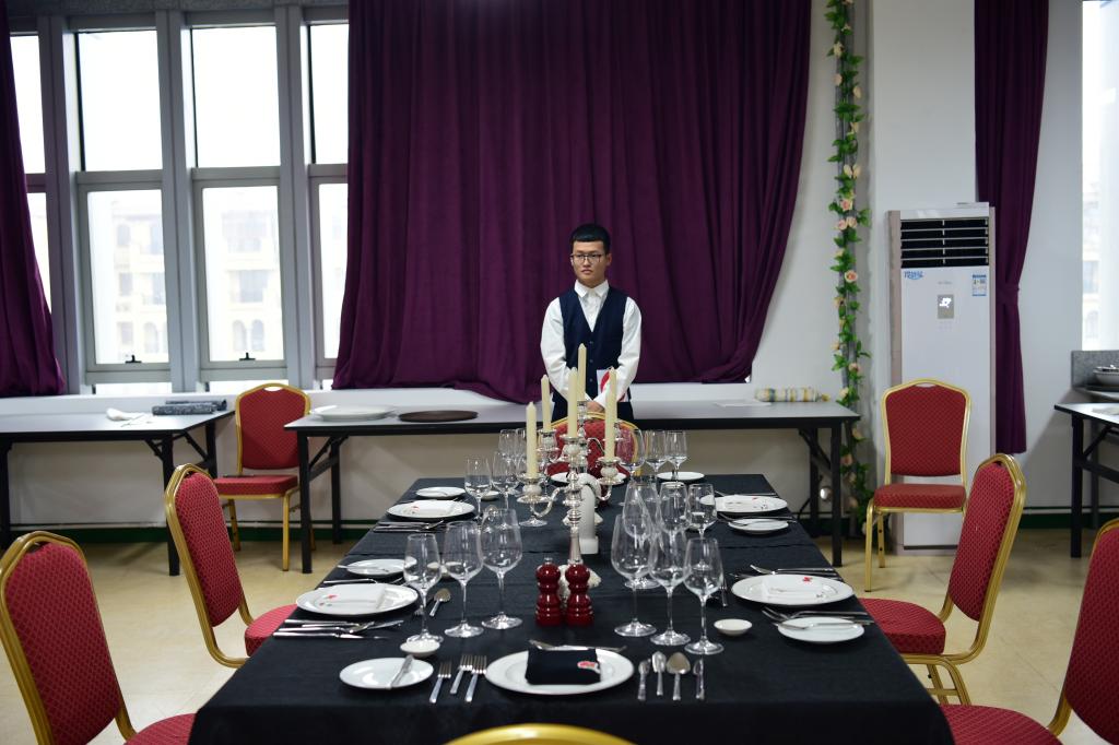 本次酒店服务技能大赛设有英式调酒、中餐宴会摆台、西餐宴会摆台、客房中式铺床四个项目。经过初赛的选拔,共有62名选手晋级决赛。比赛现场气氛热烈,各参赛选手高度专注,在操作台上争分夺秒却又有条不紊,中西餐摆台比赛中,选手迅速完成餐具摆台、餐巾折花、台面布置。客房中式铺床比赛的选手们甩单的动作迅速潇洒一次到位,技惊四座。姿态优雅的调酒选手,以精湛的技术将美丽的彩虹鸡尾酒呈现在大家面前,获得观众称赞。评委们客观公正,对选手作品进行仔细认真评判。经过选手们的激烈比拼,18酒店3➕2班朱本业等8名选手获得各个项目一等奖。