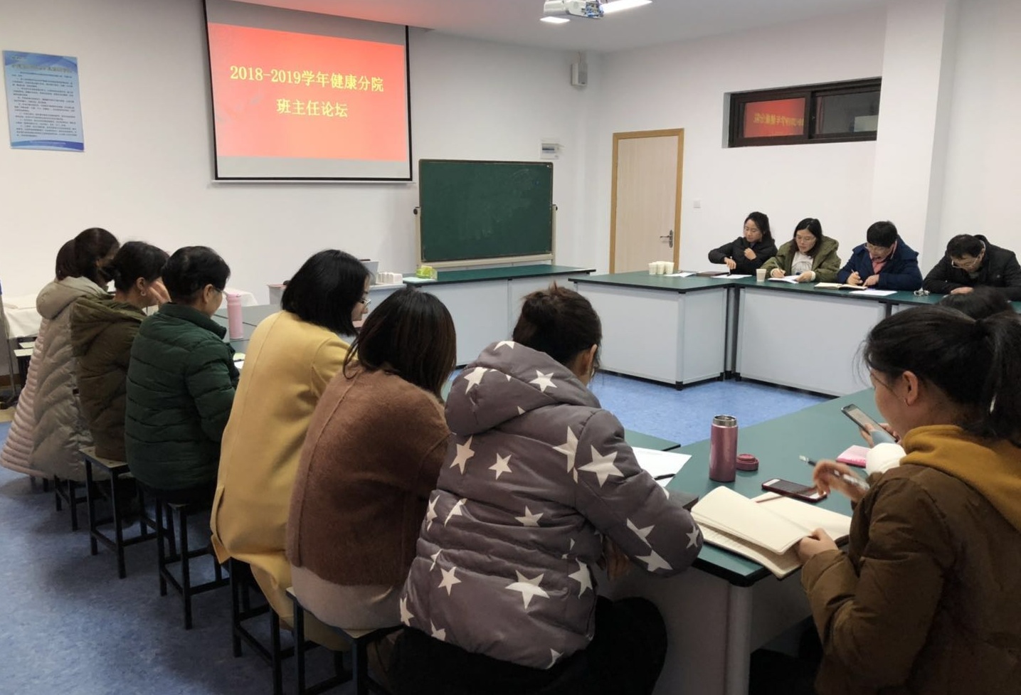 2019年1月9日下午,健康分院在健康楼520召开学期末班主任论坛,本次论坛由健康分院党总支书记杨奇美老师主持,辅导员和班主任老师出席本次论坛,四位班主任代表上台发言。
