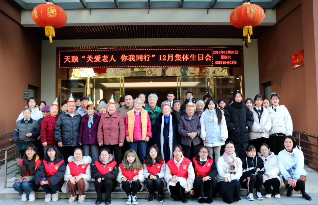 2019年12月7日上午,在老师的带领下,健康分院志愿者们赴天颐老人之家为老人们举办12月集体生日会。