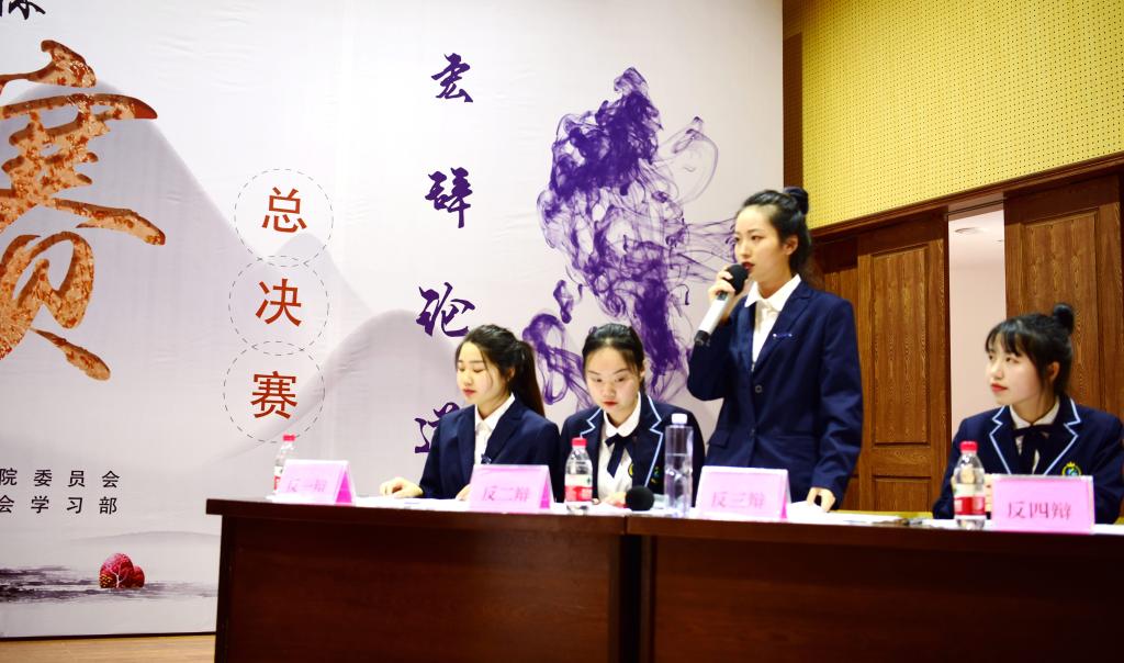 比赛共有开篇陈词、攻辩、攻辩小结、自由辩论及总结陈词五个环节。第一场为季军争夺战,由正方魑魅魍魉四姑娘队对战反方银河护卫队,她们的辩题是“弘扬优秀传统文化重在创新/传承”。第二场为冠军争夺战,辩题是“在校大学生知识累积更重要/塑造人格更重要”。比赛中,双方辩手们你来我往,唇枪舌战,妙语连珠,精彩的表现赢得了现场阵阵掌声。在此期间,乐老师和余老师分别对她们的辩论进行了点评,肯定了辩手们的优秀表现,也指出了不足之处。