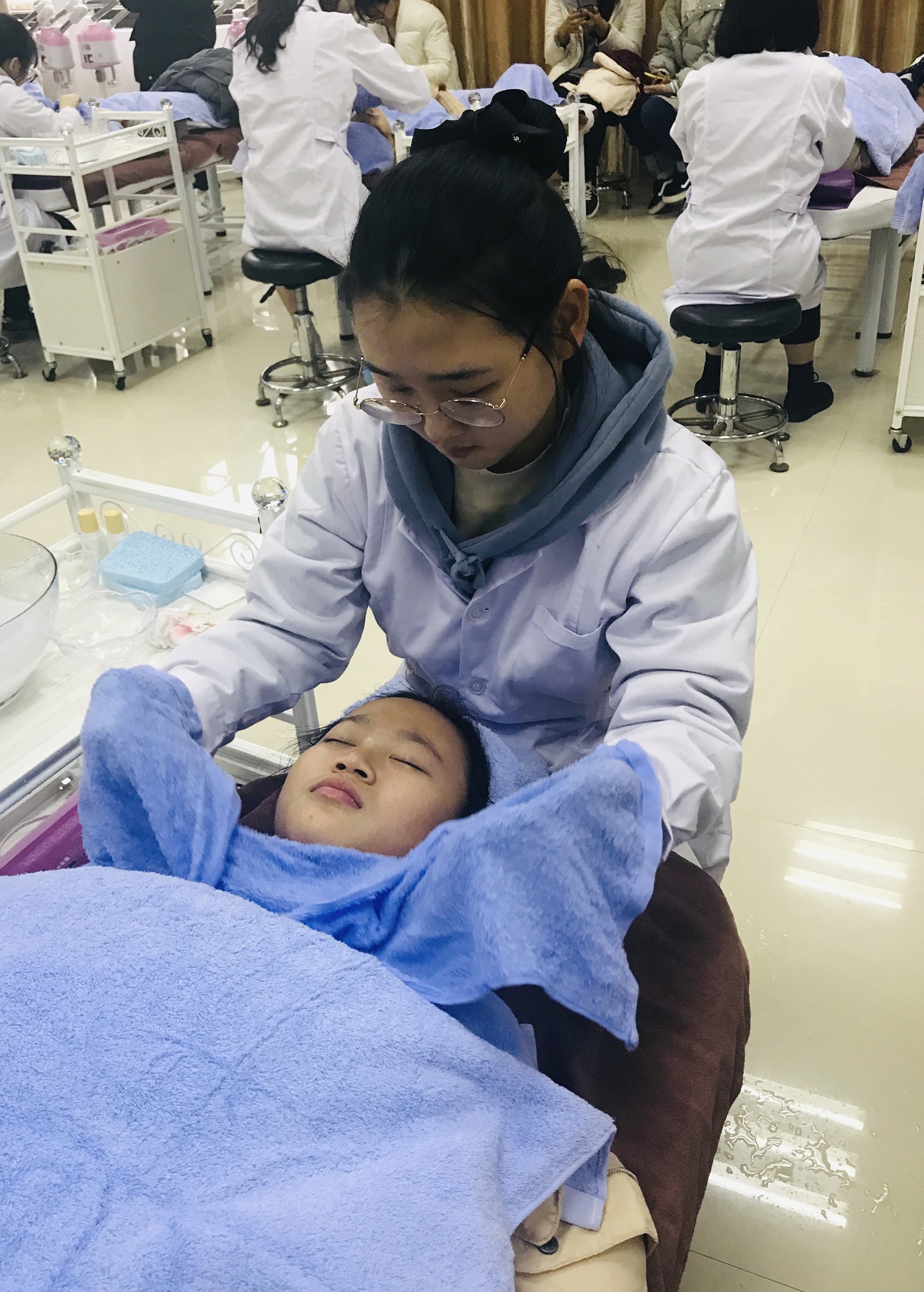 为了更全面地展示同学们的专业技能,18级护理(医疗美容)班的同学做了精心准备,经过陈罕娜老师2个多月的培训指导,同学们已掌握了面部美容按摩的基本技术与操作流程,分院从中选出了10位同学参加本次专业技能展示。
